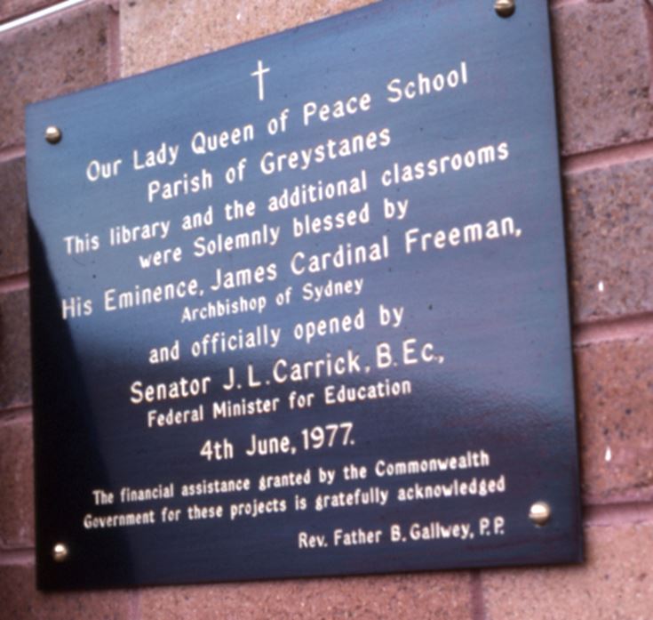 In 1972, the school was renamed Our Lady Queen of Peace.
